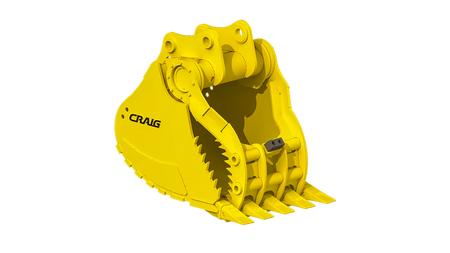 The Craig Grab Bucket 2 is our newest version of our Craig Grab Bucket. The most exciting feature is the helical actuator that replaces standard cylinders, making the attachment more reliable and stronger than ever. The Helical Actuator can produce up to 54,000 foot-pounds of torque at 3000 PSI. This means a continuous grip throughout the bucket’s rotation. The thumb is directly mounted on the bucket, you can drop the entire attachment in one piece. This design uses AR 400 plate which allows for longer wearability and service life.