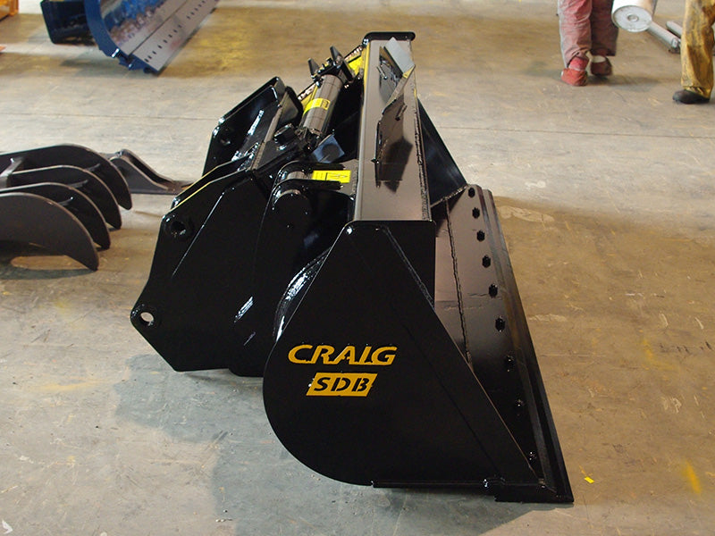 Working in tight quarters? The Craig Side Dump Bucket is for you. Designed to work safely with your specific machine, the Side Dump Bucket allows conventional loading and lateral unloading for material. Simply pull up beside the truck or trench and dump the bucket sideways hydraulically. Eliminates excess loader travel and lost time.
