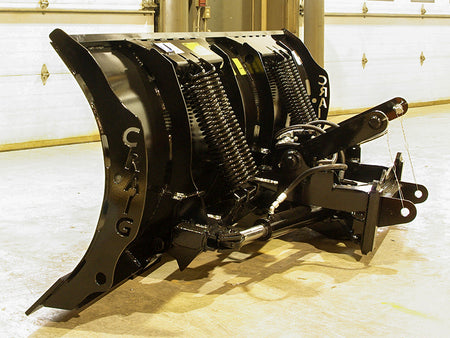 The result of over 70 years of design improvements, this reversible is the industry leader in snow equipment for backhoes today. The full floating frame follows the contour of the road both laterally and horizontally to ensure maximum contact.