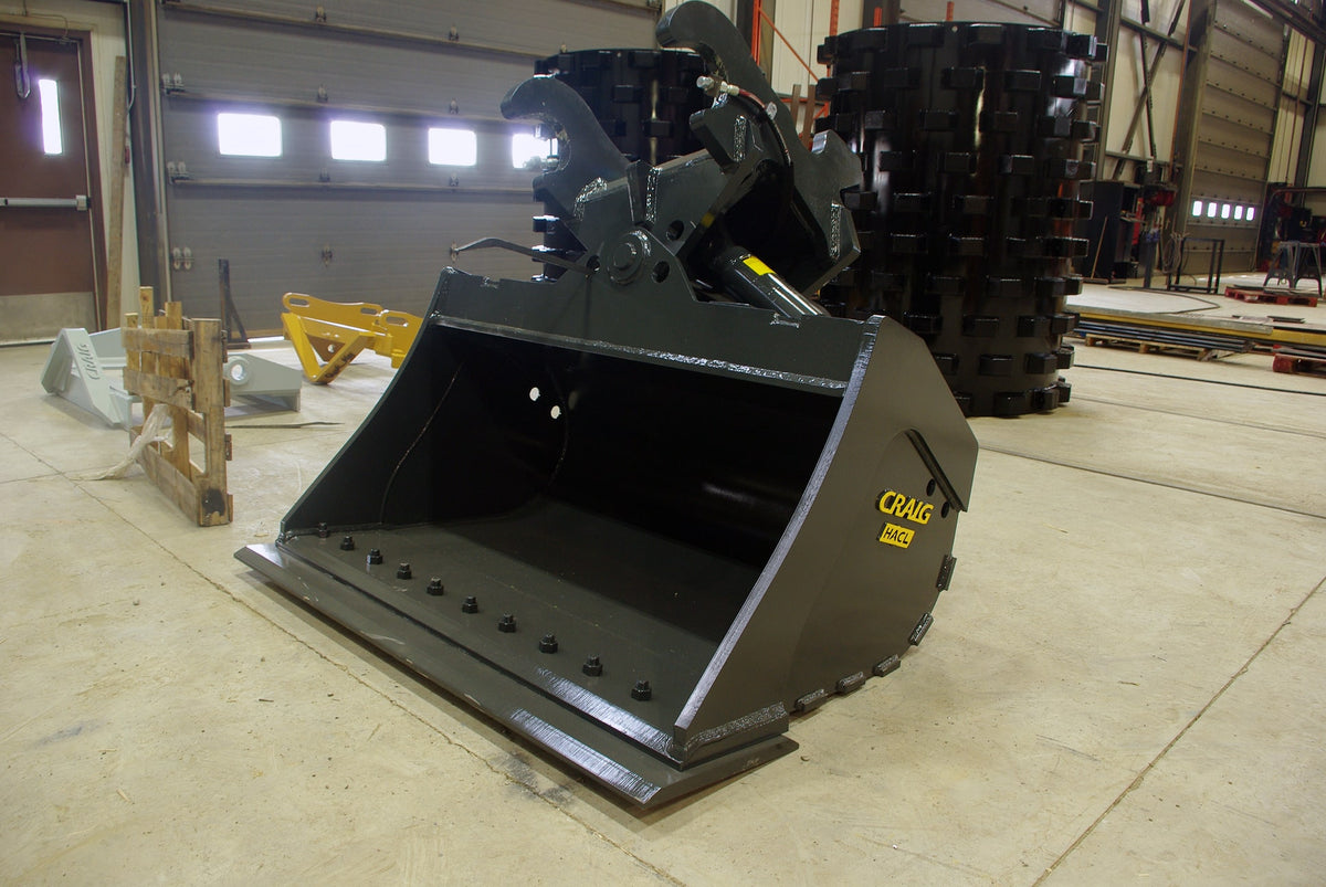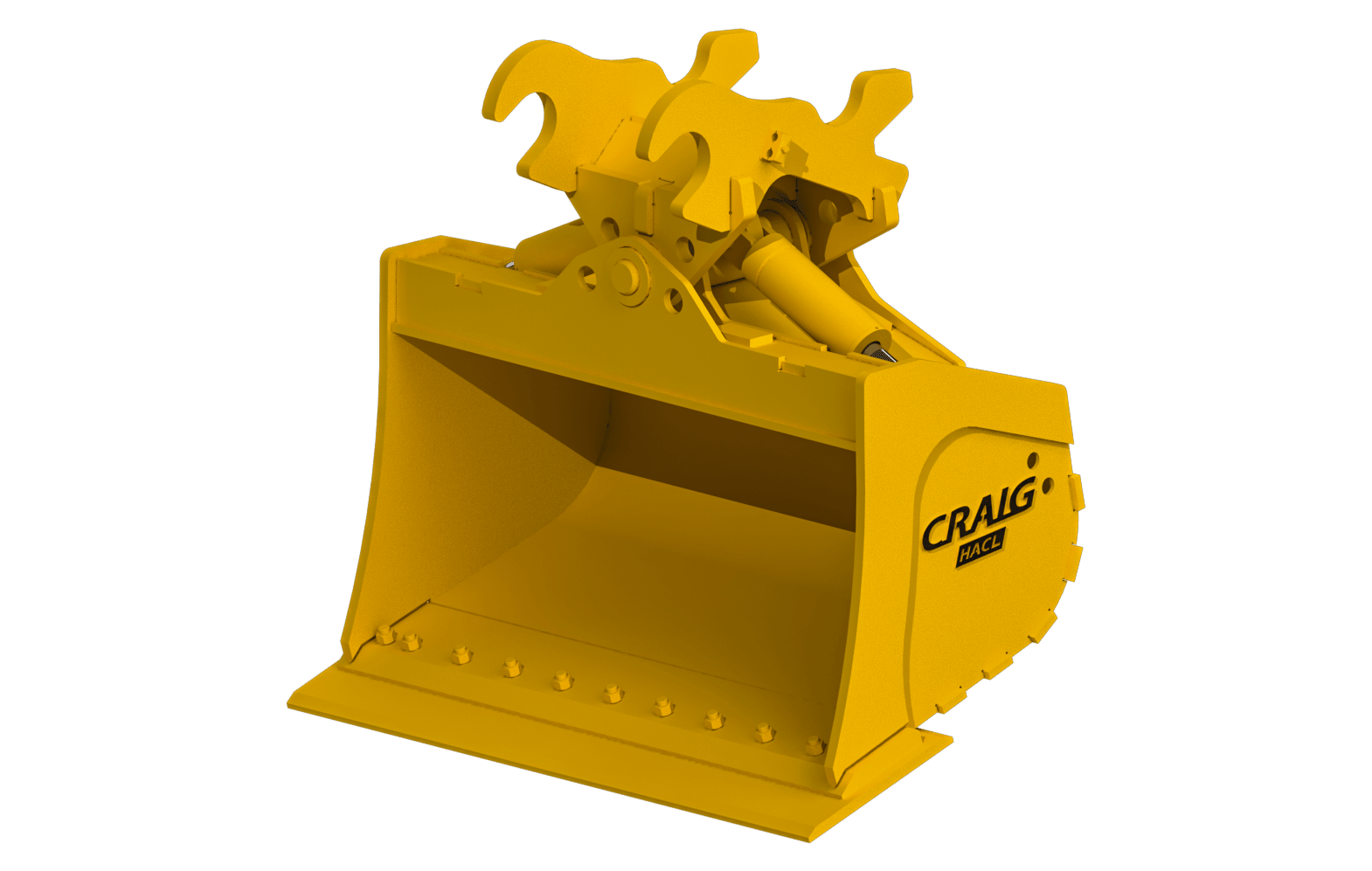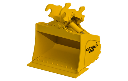 The Craig Hydraulic Angling Clean Up Bucket features a flat bottom design with angled cylinders, to prevent material build up, that offers up to 45° of rotation left and right. Available with a straight or serrated cutting edge.