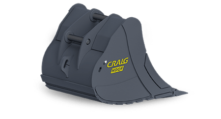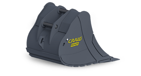 Craig offers all digging buckets with the option of low pin lugging. Used exclusively on machines equipped with pin grabbers. Recessed pins decrease tip radius for added breakout force over conventional full height lugs.