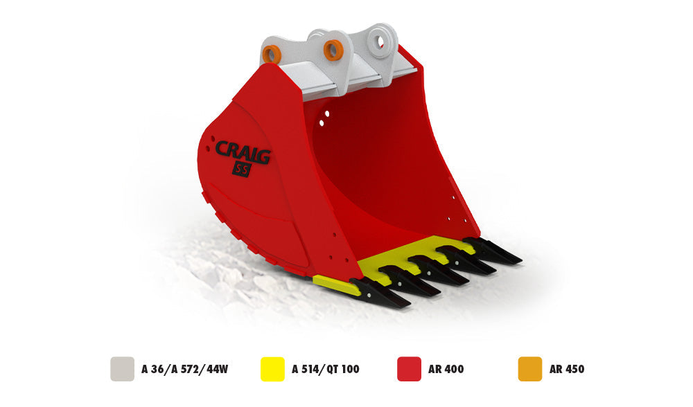 Craig Severe Service Buckets are specifically designed to meet your toughest applications. Superior AR 400 quenched and tempered steel is used in the mainsheet, end-plates and horizontal wear bars.