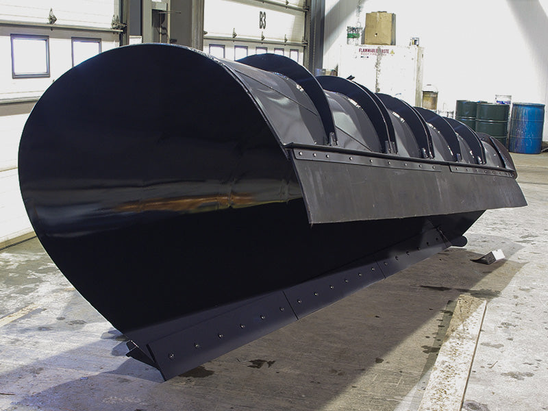 Features a very aggressive conical moldboard. This plow has been designed specifically for highway use. The large difference between intake and discharge heights results in superior snow curl and discharge at high speeds.