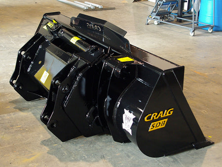 Working in tight quarters? The Craig Side Dump Bucket is for you. Designed to work safely with your specific machine, the Side Dump Bucket allows conventional loading and lateral unloading for material. Simply pull up beside the truck or trench and dump the bucket sideways hydraulically. Eliminates excess loader travel and lost time.